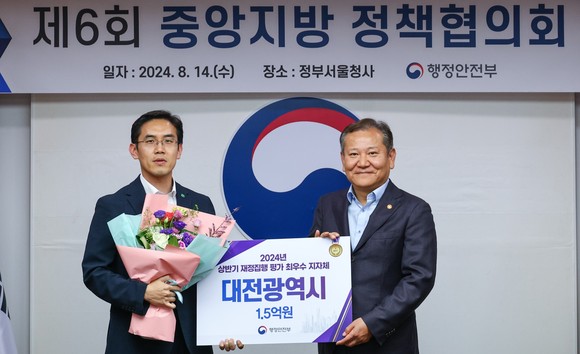 대전시, 행안부 상반기 신속집행 평가 최우수 기관상 수상