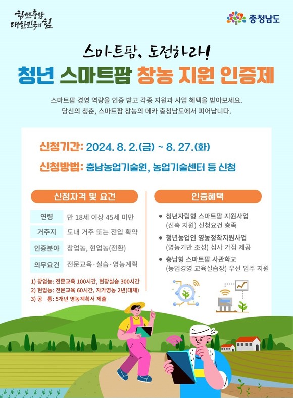 충남도 청년 '스마트팜 교육·창농' 원스톱 지원 확대