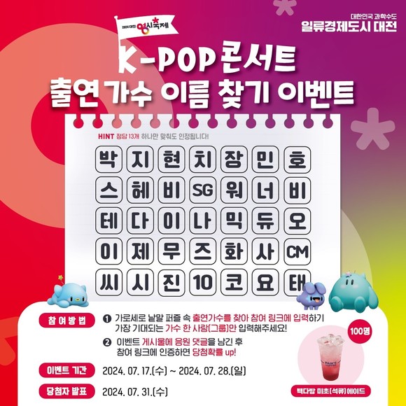 대전시, K-POP 콘서트 출연가수 이름 찾기 SNS 이벤트 진행