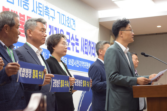 민주당 보령·서천지역위 김기웅 서천군수 '통나무집 군정농단·불법불통행정' 책임 사퇴 촉…