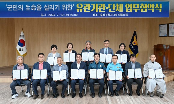 홍성군-홍성경찰서, 13개 기관·단체와 교통 사망사고 예방 업무협약 체결