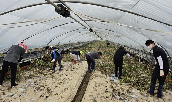 예산군 농업기술센터, 폭우 침수 피해 화훼농가 찾아 수해복구 지원