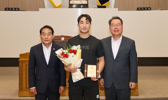 당진시의회, 당진이 낳은 태백장사 홍승찬 씨름 선수 표창패 수여