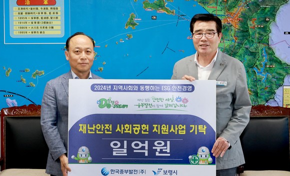한국중부발전, 보령시에 재난안전 사회공헌 지원사업 지원금 1억원 기탁