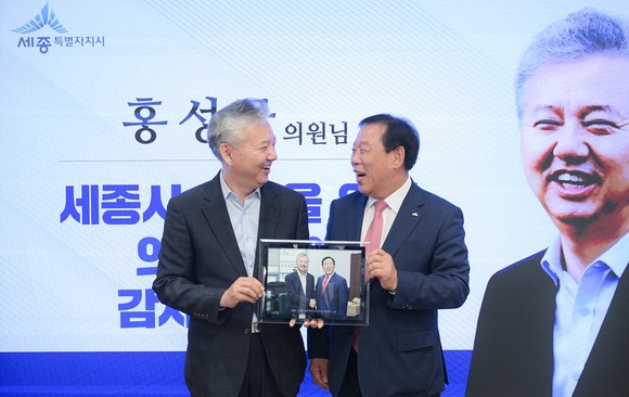 최민호 세종시장, 행정수도 완성 등 의정활동에 감사 인사로 홍성국 의원에 감사패 전달