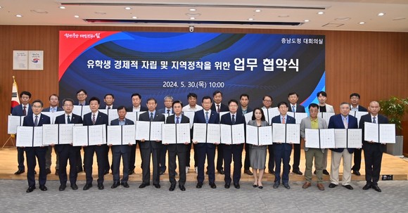 충남도·대학·기업·협회·진흥원, 유학생 경제적 자립 및 지역정착 위한 업무협약 체결