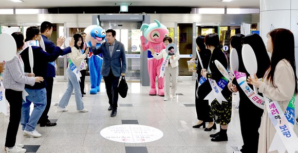 보령시 시청 직원 대상 'OK보령 활짝 웃는 날' 출근길 캠페인 전개