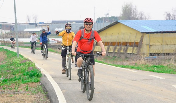 박상돈 천안시장 성성호수공원~북면 위례벚꽃축제 현장까지 자전거 라이딩