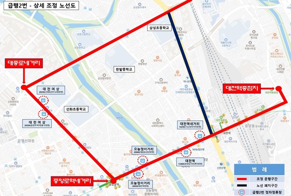 대전시 시내버스 급행2번 노선조정, 급행4번 신설 운행