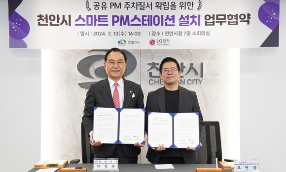 천안시·LG전자와 '스마트 개인형 이동장치 스테이션' 도입 업무협약 체결