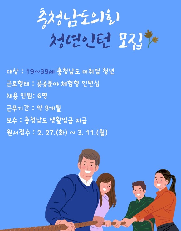 충남도의회, 오는 3월11일까지 도내 미취업 청년 대상 청년인턴 모집