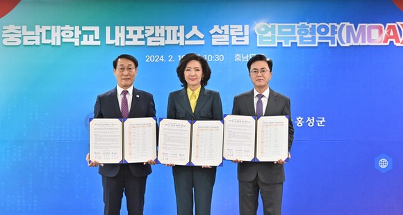 충남도·충남대·홍성군, 1100명 규모 '충남대 내포캠퍼스' 설립 협약 체결