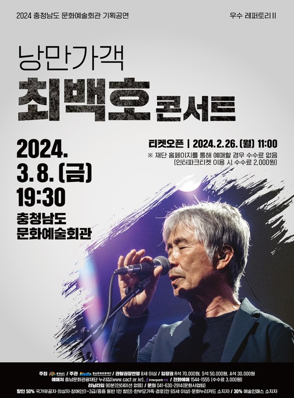 충남도 문예회관에서 기획공연 '낭만가객 최백호 콘서트' 개최