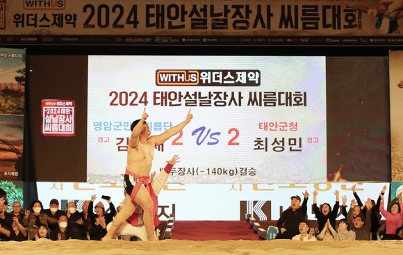 태안군 '2024 설날장사 씨름대회'서 최성민 선수가 고향서 백두장사에 등극