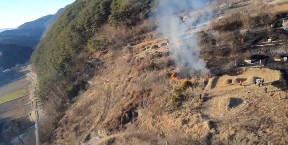 경남 합천군 쌍백면 하신리에서 산불발생 진화중