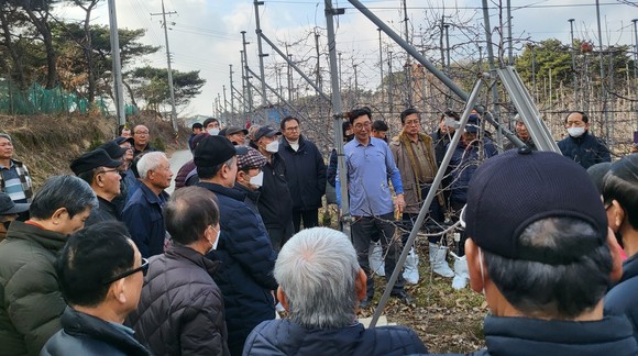 당진시농업기술센터, 사과 나무 정지·전정 현장 교육 진행