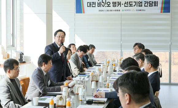 이장우 대전시장, 지역기업 큐로쎌 방문해 바이오의약품 기업인들과 간담회 개최