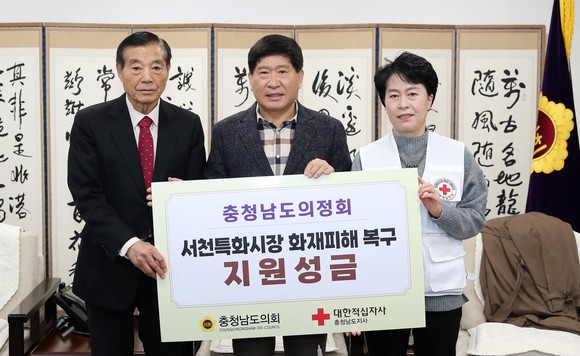 충청남도의정회, 서천특화시장 화재 피해복구 성금 대한적십자사 충남지사에 전달