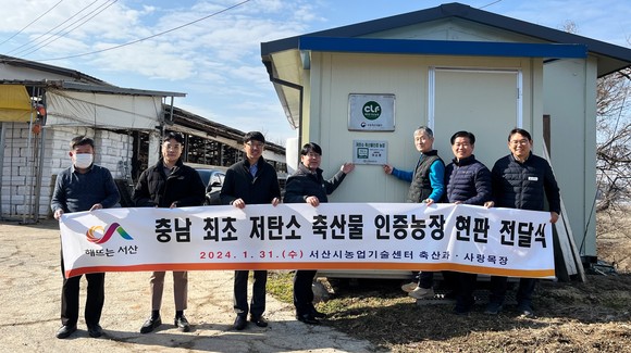 서산시, 충남 최초 저탄소 축산물 인증농가 1호 선정 현판 전달식 개최