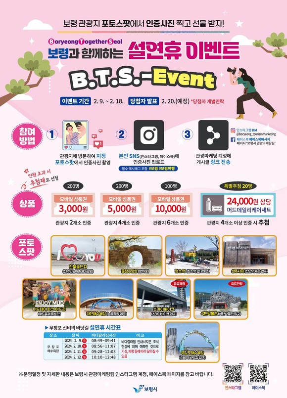 보령시, 보령과 함께하는 설연휴 B·T·S 관광지 SNS 인증 이벤트 진행
