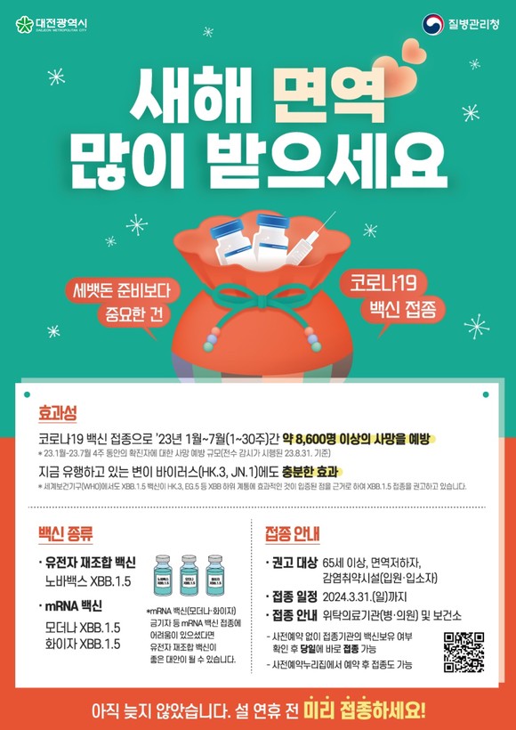 대전시, 설 명절 전 고위험군 코로나19 백신 집중 접종기간 운영