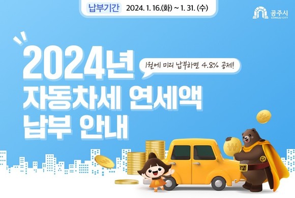 공주시, 2024년 자동차세 연납 신청하면 4.58% 할인 연납제도 시행
