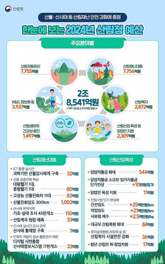 산림청, 2024년 산림분야 예산 2조8541억원 확정
