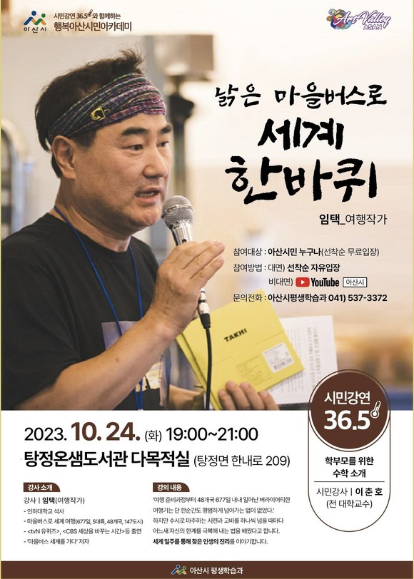 아산시 임택 여행작가 초청 '행복아산 시민 아카데미' 개최