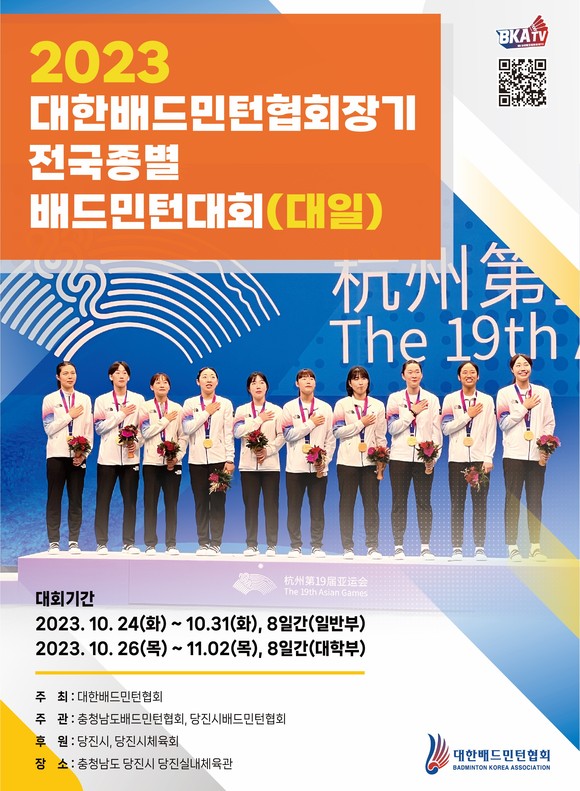당진시, 2023 대학·일반부 전국종별배드민턴대회 개최