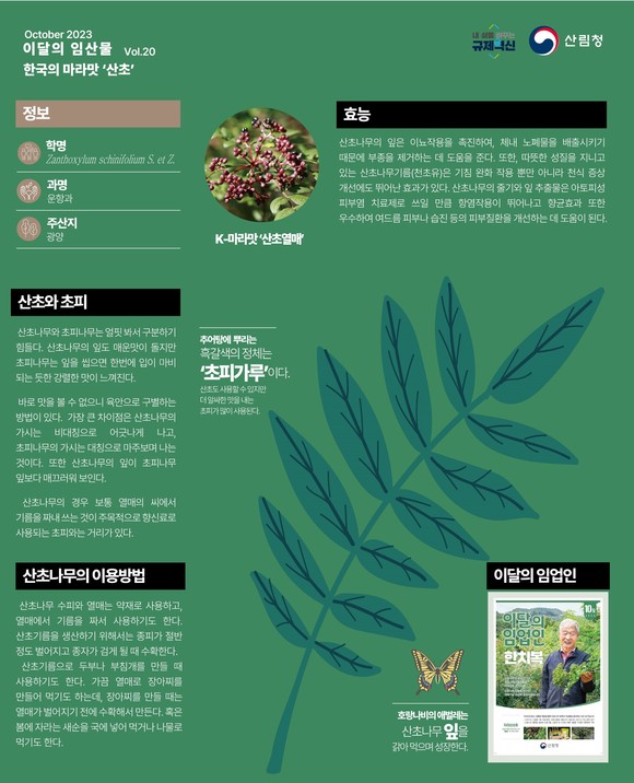 산림청 10월 이달의 임산물 한국의 마라맛 '산초나무'