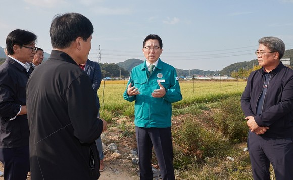 박경귀 아산시장 도고지역 '쪽파 잎마름' 피해 현장 방문