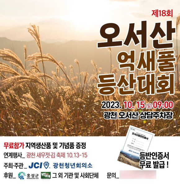 '우리 꼭 같이와요' 홍성군 제18회 오서산 억새풀 등산대회 개최