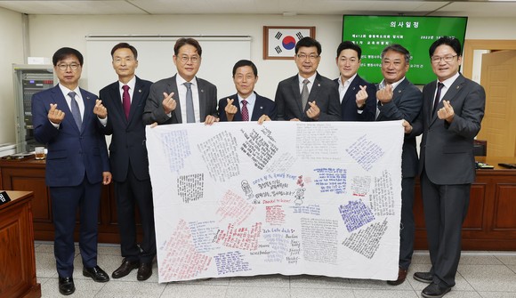 충북도의회 교육위, 한·독 국제교류 프로젝트 참가 학생들에 손 편지 휘장 받아