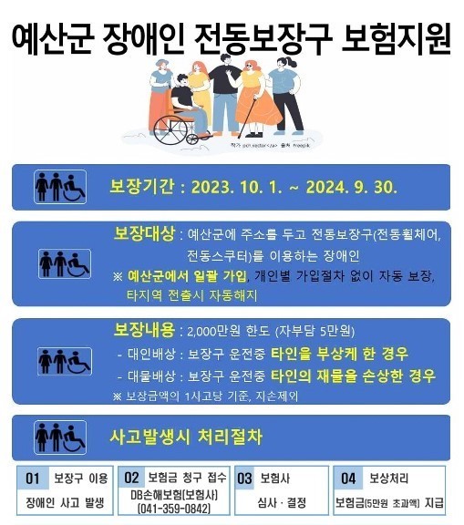 예산군 '전동보장구 이용 장애인' 위한 단체보험 가입