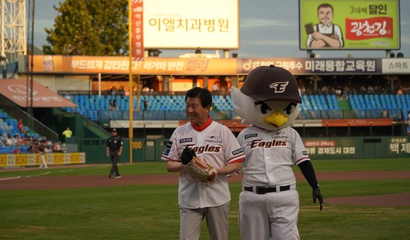 박범인 금산군수 '제41회 금산세계인삼축제 성공 기원' 한화이글스 시구