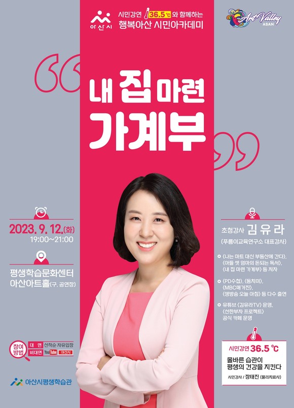 김유라 강사 특강 '내 집 마련 가계부' 주제 행복아산 시민아카데미 개최