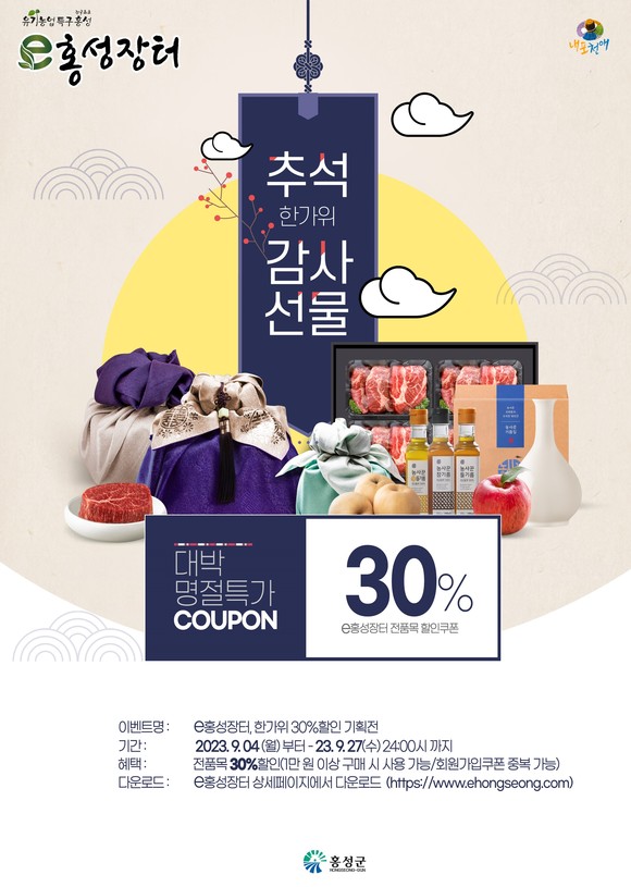 홍성군 'e홍성장터' 추석맞이 농축수산 선물세트 전품목 30% 할인