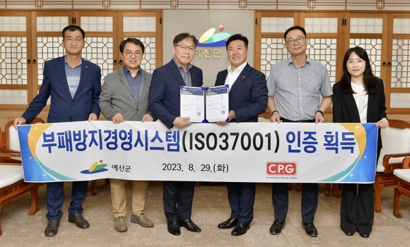 예산군 전국 군부 최초 부패방지경영시스템 인증서 획득