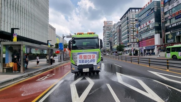 '더위를 식혀라!' 천안시 폭염 대응 도로변 살수 작업 한창