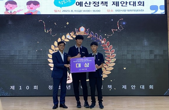 천안시 제10회 청소년 예산정책 제안대회 '청지기 팀' 대상 수상