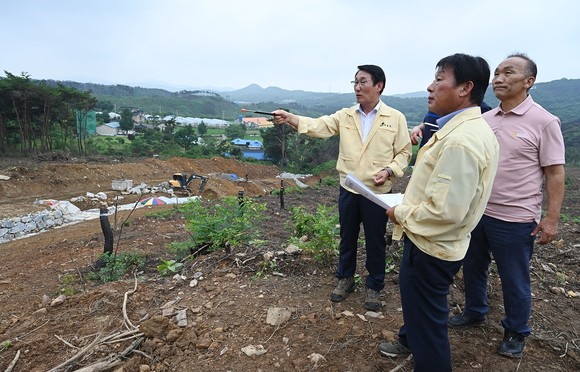 이용록 홍성군수, 산불피해지역 보강토 응급복구 산사태 막아