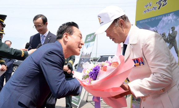 백성현 논산시장 논산 출신의 한국전쟁 참전용사 '영웅 제복 착복식' 개최