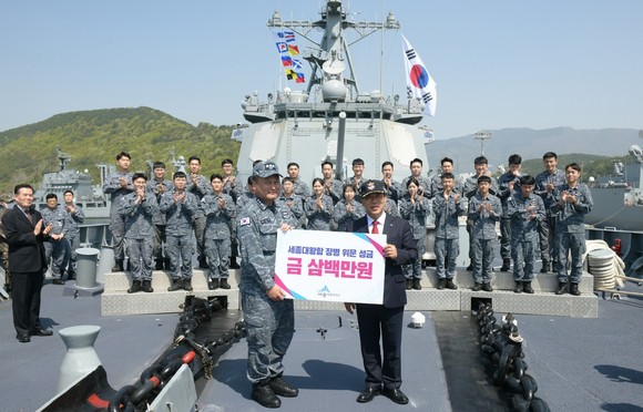 최민호 세종시장, 세종대왕함 해군장병 위문물품 전달·격려