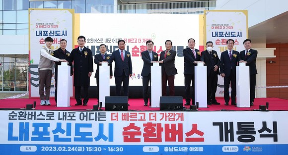 김태흠 지사, 내포신도시 친환경 순환 전기저상버스 개통식 개최