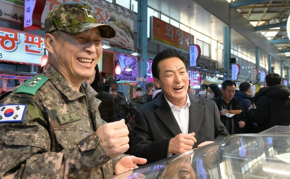 [포토] 백성현 논산시장 전국 최초 민·관·군 '전통시장 장 보는 날' 캠페인 개최