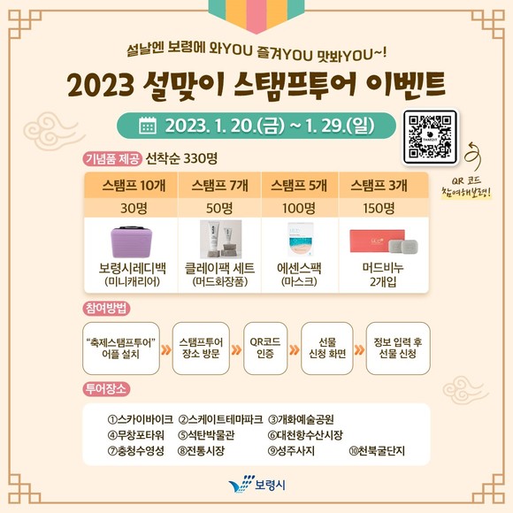'보령에 와YOU! 즐겨YOU! 맛봐YOU!' 설 맞이 축제 스탬프투어 이벤트 개최