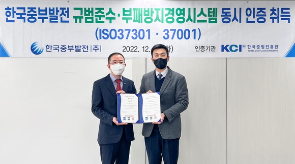 한국중부발전 ESG 경영 강화, 규범준수·부패방지 경영시스템 동시 인증 취득