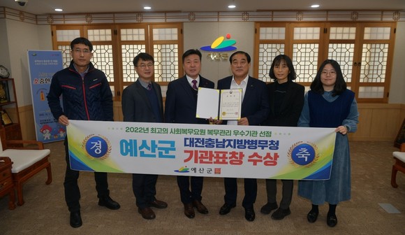예산군 '2022년 사회복무요원 복무기관 우수기관' 선정 우수기관 표창 수상