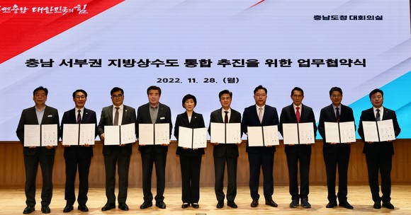 김태흠 충남도지사, 충남 서부권 7개 시·군 지방상수도 통합 추진 업무협약 체결