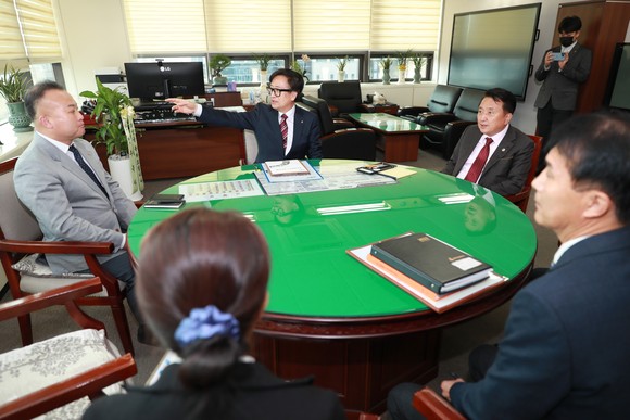 오세동 청주부시장, 50년 장수 가구 ㈜솔로몬 찾아 근로자 경영애로 청취